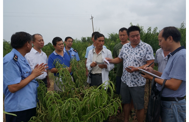随州网讯 随州市曾都区万店工商所日前邀请省农科院专家到该镇先觉庙村、横山村等地为当地种植户做技术鉴定。今年5月,该镇38位果农投诉在山东等地购买的果树苗品种不纯,影响收成,经过省农科院专家鉴定后将依法维护果农的利益。(记者 孙洪涛 通讯员 张光荣 何玉俊摄)